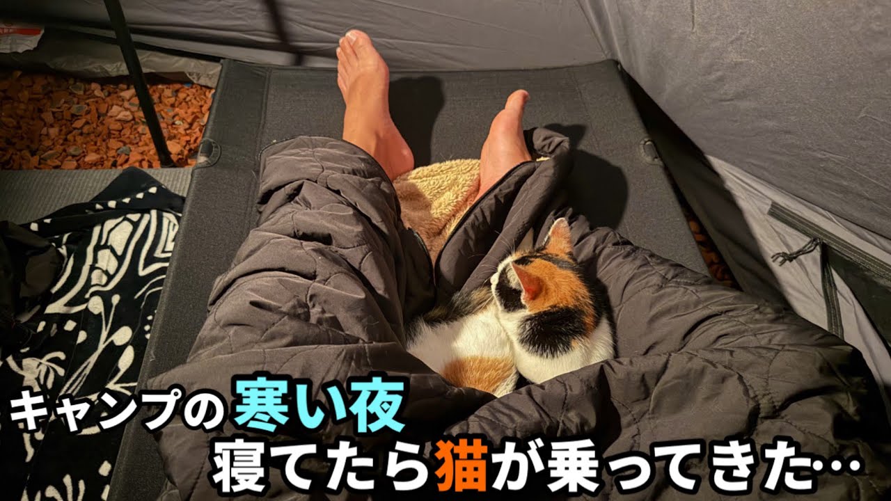 タイトル | ソロキャンプで寝てたら猫が寝袋の上に乗ってきた…可愛すぎて動けない… |