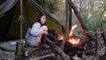 テント 軍幕でソロキャンプ|暑い夏はいつも標高の高い森に逃げています|すずしい渓流でのんびりと涼を取る|焚き火に放り込んだ缶詰でワイルドな食事 – シルコcamp 出典:YouTube / シルコcamp 2025.07.08 テント